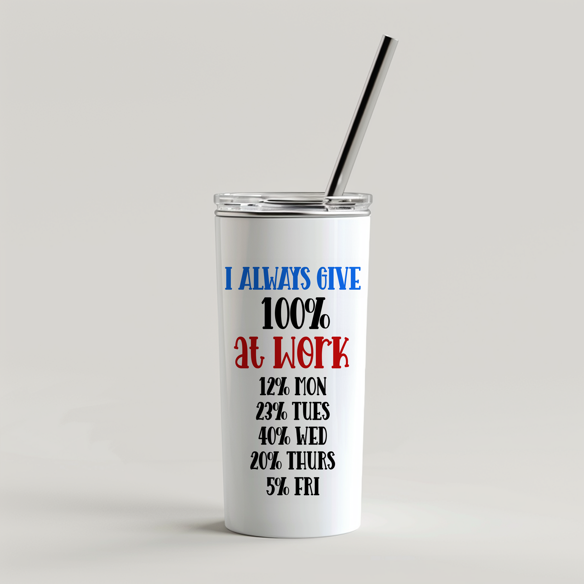 I Always Give 100% at Work - Skinny Tumbler with Straw